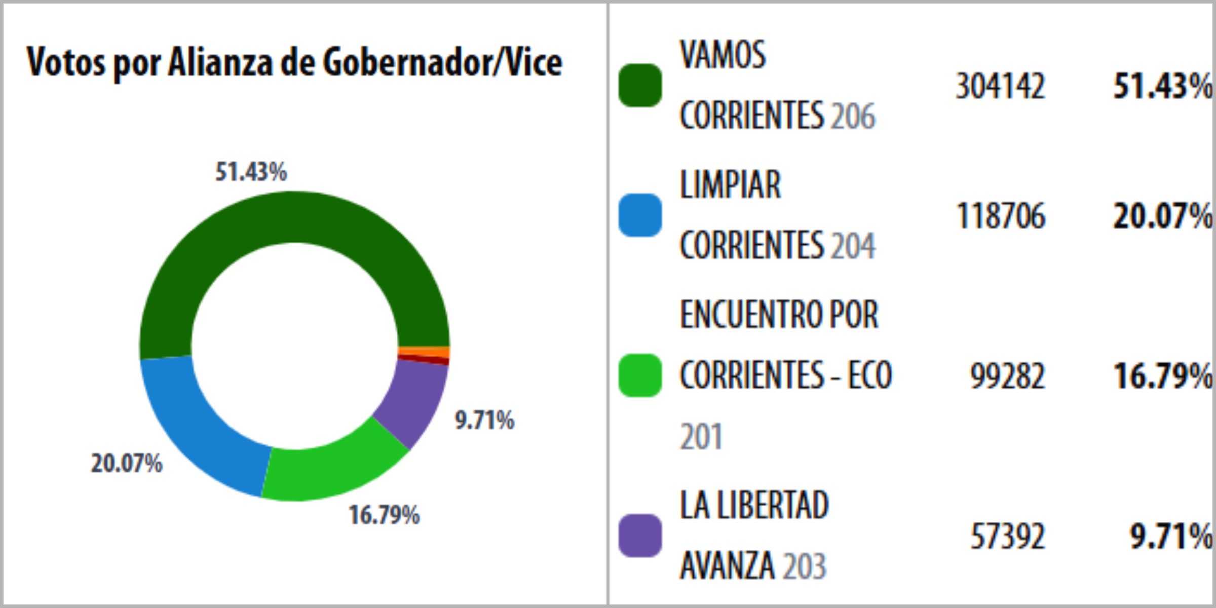 La alianza oficialista Vamos Corrientes se impuso en las elecciones provinciales con el 51,43% de los votos, consagrando a Juan Pablo Valdés como nuevo gobernador y sucesor de su hermano Gustavo. Con este resultado, no habrá segunda vuelta.